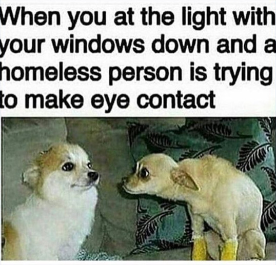 When You at the Light With Your Windows Down and a Homeless Person Is Trying To Make Eye Contact