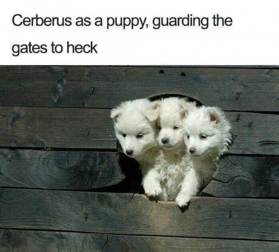 Cerberus as a Puppy Guarding the Gates to Heck